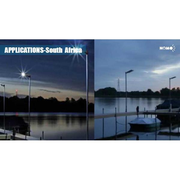 NOMO all in one solar street lights absorb energy from the sun and convert it into battery electricity storage and power the illumination when it is dark. Their integrated photo-voltaic module, controller and LiFE PO4 battery combine with high output LEDs and NOMO lighting managing system.